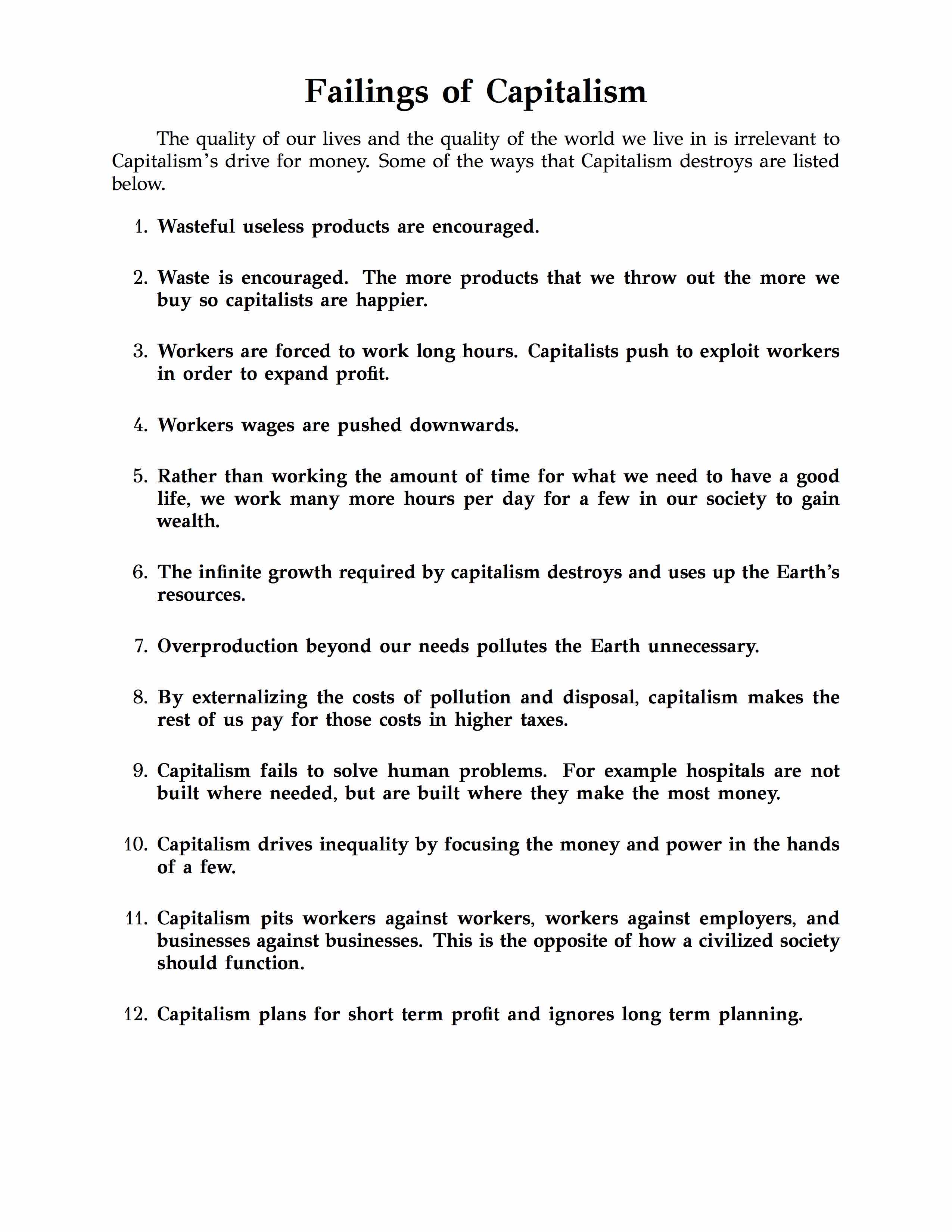 This is a challenging read, but Marx lays out in beautiful detail the reasons that capitalism has been and continues to be so destructive to both humans and to our world. Capital, A Critique of Political Economy.